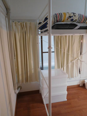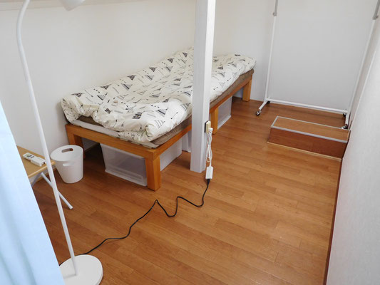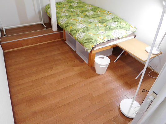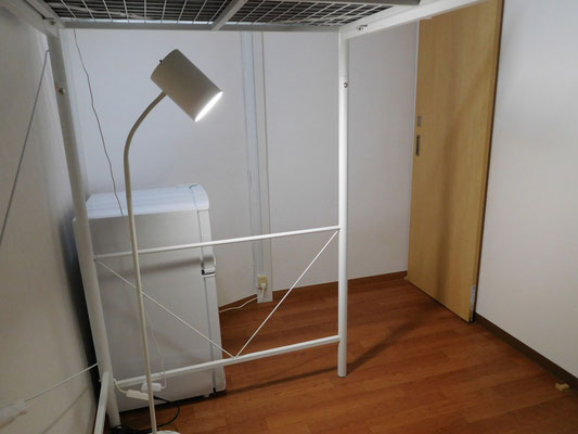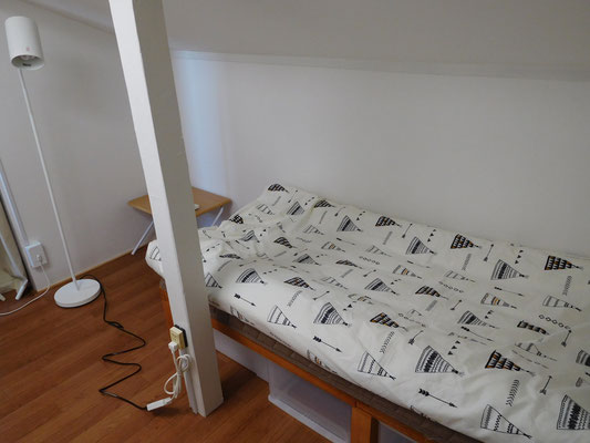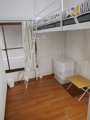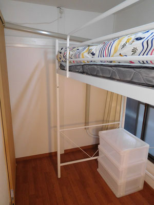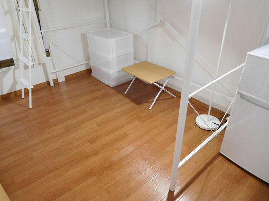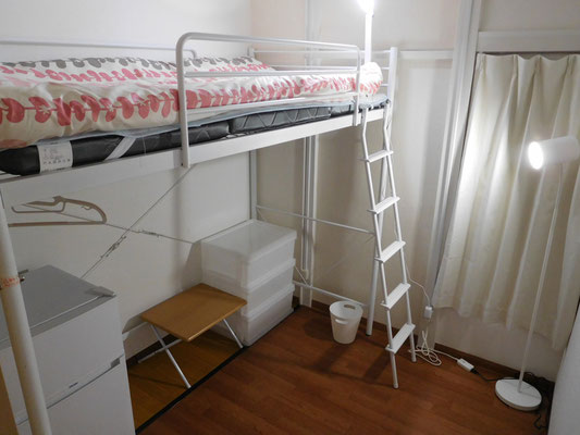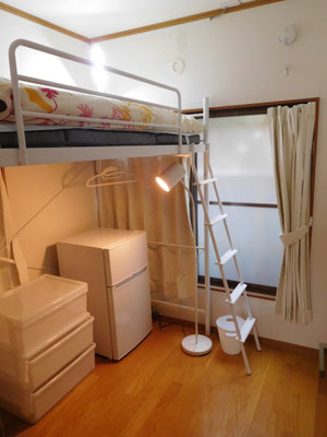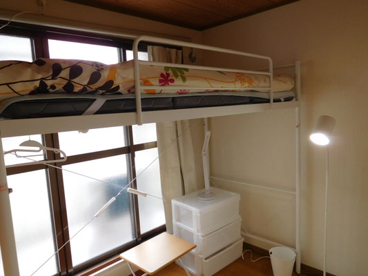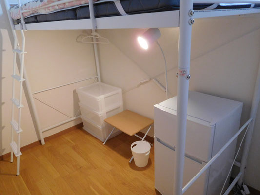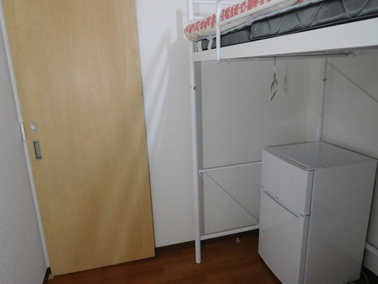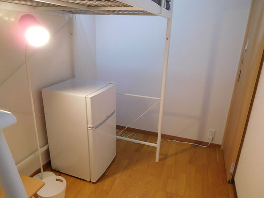 ロフトベット、2ドア冷蔵庫、引き出し、テーブル、エアコン付きです。