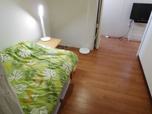 ベット、テーブル、引き出し、ハンガーポール、テレビ、エアコン付いてます