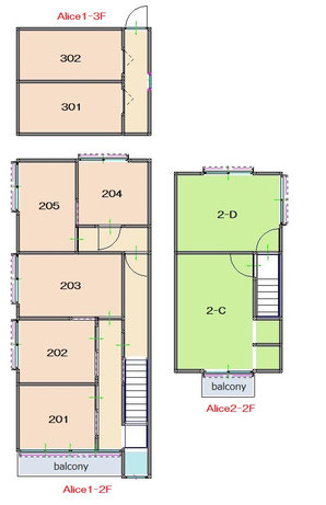 冷蔵庫(301、302はキッチンの共用冷蔵庫になります)・エアコン・Wi-Fi完備(光回線)